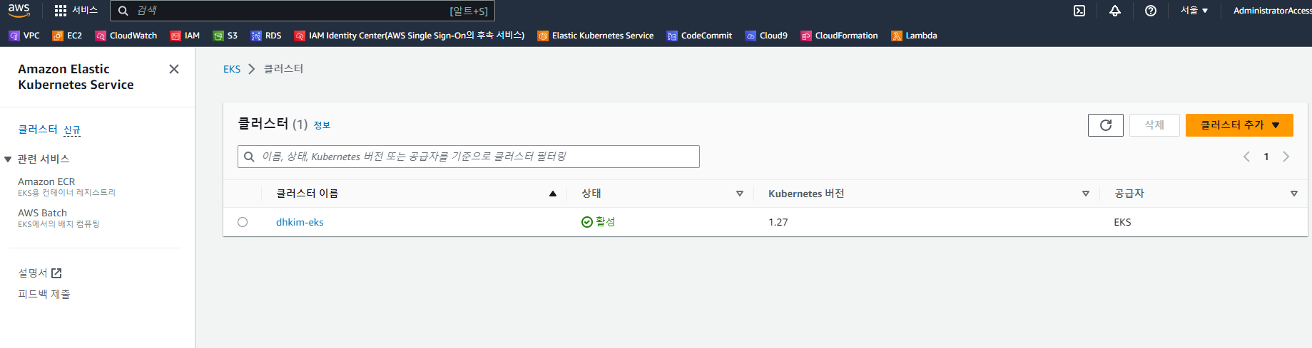 name: dhkim-eks # 생성할 EKS 클러스터명